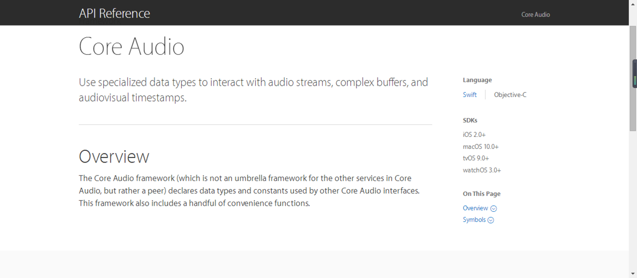 link:https://developer.apple.com/reference/coreaudio?language=objc