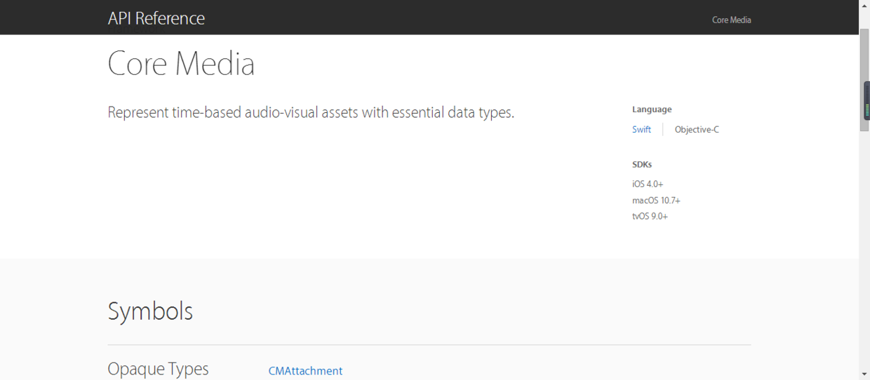 link:https://developer.apple.com/reference/coremedia?language=objc