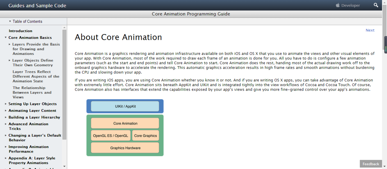 link:https://developer.apple.com/library/content/documentation/Cocoa/Conceptual/CoreAnimation_guide/Introduction/Introduction.html