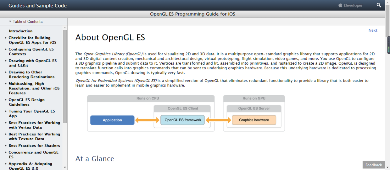 link:https://developer.apple.com/library/content/documentation/3DDrawing/Conceptual/OpenGLES_ProgrammingGuide/Introduction/Introduction.html