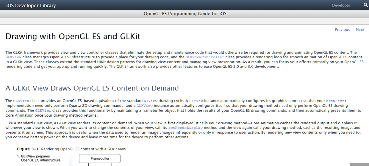 https://developer.apple.com/library/ios/documentation/3DDrawing/Conceptual/OpenGLES_ProgrammingGuide/DrawingWithOpenGLES/DrawingWithOpenGLES.html