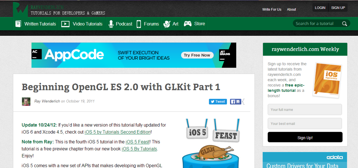 https://www.raywenderlich.com/5223/beginning-opengl-es-2-0-with-glkit-part-1